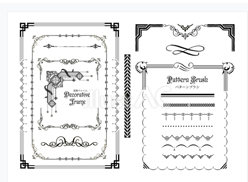 フレーム,装飾、コーナー、手描き、ブラシ、パターンブラシ、白背景、ライン,線,区切り線、パターン,飾り,枠、ゴージャス、アンティーク、縁飾り,罫線,あしらい,タイトル,見出し,バナー,カード,おしゃれ,模様,広告,カタログ,パンフレット,ウェディング,ポストカード,ラグジュアリー,メッセージ,ギフト,ラベル,グリーティングカード,クラシック,案内状,招待状,チラシ,レイアウト,素材,ベクター,商用フリー,セット